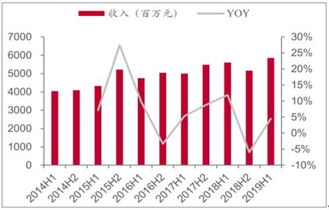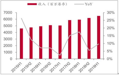 2015-2019年上半年恒安國(guó)際收入及變動(dòng)趨勢(shì)