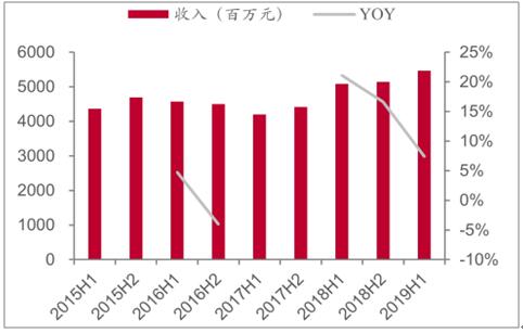 2015-2019年上半年維達(dá)國(guó)際收入及變動(dòng)趨勢(shì)