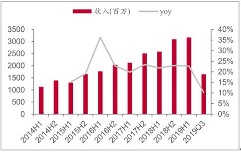 2014-2019Q3中順潔柔收入及變動(dòng)趨勢(shì)