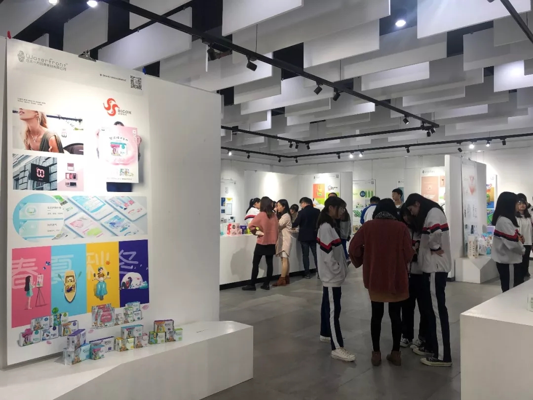 總計(jì)600多平米的展廳內(nèi),布置著在水一方眾多經(jīng)典品牌案例及設(shè)計(jì)成品,多款嶄新精致的產(chǎn)品引起現(xiàn)場師生的極大興趣和重點(diǎn)關(guān)注。對于較少接觸到完整品牌系統(tǒng)的學(xué)生而言,這也是頗為難得的學(xué)習(xí)機(jī)會。