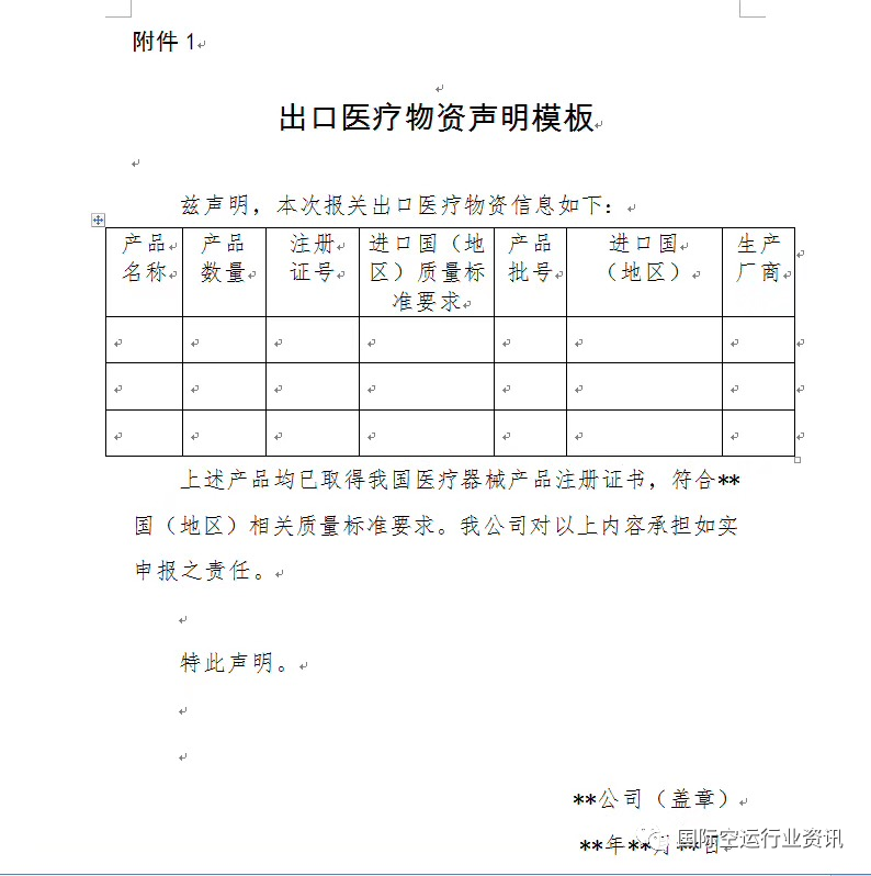 (出口醫(yī)療物資聲明:表格不能留空,表頭不要有模板兩個(gè)字,蓋生產(chǎn)銷(xiāo)售單位公章,每項(xiàng)必須填滿)