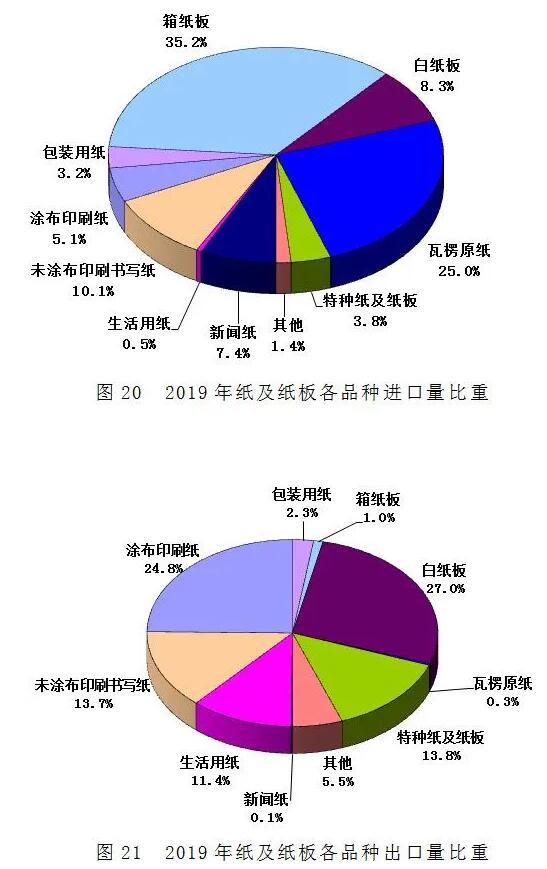 2019年紙及紙板進口625萬噸,較上年增長0.48%;紙漿進口2720萬噸,較上年增長9.72%;廢紙進口1036萬噸,較上年增長-39.17%;紙制品進口12萬噸,較上年增長-33.33%。
