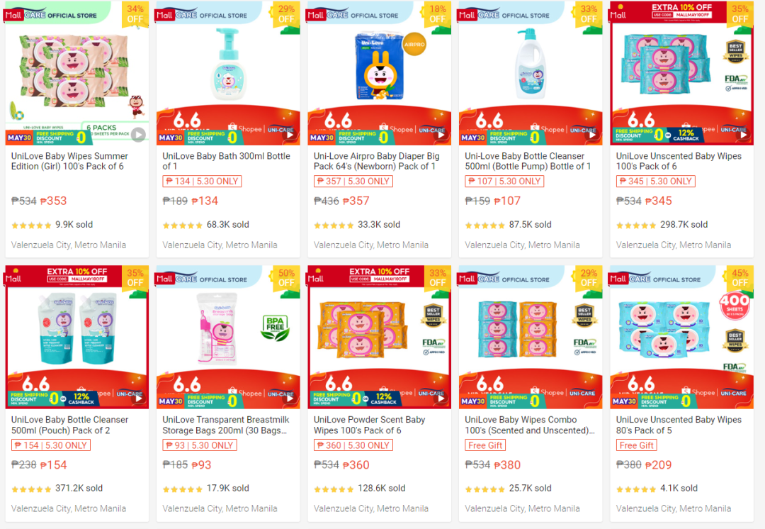 由于該品牌入局較早,有了一定的粉絲基礎(chǔ),以及品牌影響力,所以在shopee和TikTok Shop平臺銷量可觀,品牌將旗下的產(chǎn)品分割成不同的子品牌,便于寶媽消費(fèi)者查看用品,而shopee站點(diǎn)的首頁可以發(fā)現(xiàn),該品牌目前推出多種活動,并且近期正在準(zhǔn)備shopee的6.6大促。