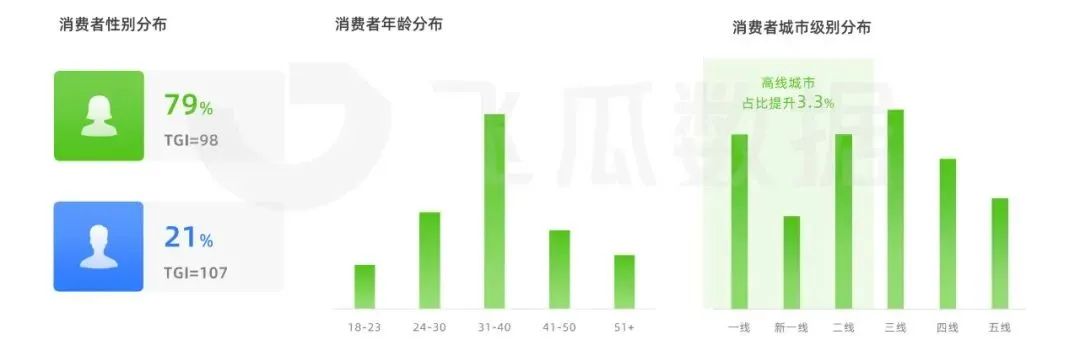 從用戶層面,目前女性群體仍是抖音生活用紙品類的主力消費(fèi)人群,占比接近8成,且年齡多集中在31-40歲區(qū)間。