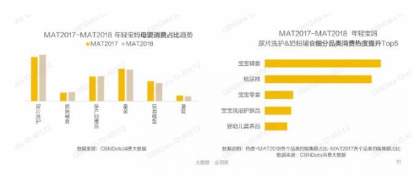 同樣,年輕寶媽的母嬰消費也向尿片洗護等剛需品類上傾斜。隨著消費升級和生活水平提高,家庭在尿片洗護品類上的支出是逐年增加的。在細分品類中,輔食和紙尿褲熱度最高,但媽媽也很關注寶寶洗浴護膚品,尤其是新手爸媽在季節(jié)變換時對于寶寶洗護用品的關注度較高。