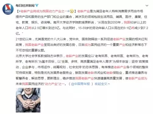 隨著中國(guó)老齡化進(jìn)程的加快,產(chǎn)業(yè)發(fā)展的機(jī)遇也逐漸到來。近日,#老齡產(chǎn)業(yè)將成為我國(guó)動(dòng)力產(chǎn)業(yè)之一#引發(fā)網(wǎng)民熱議~